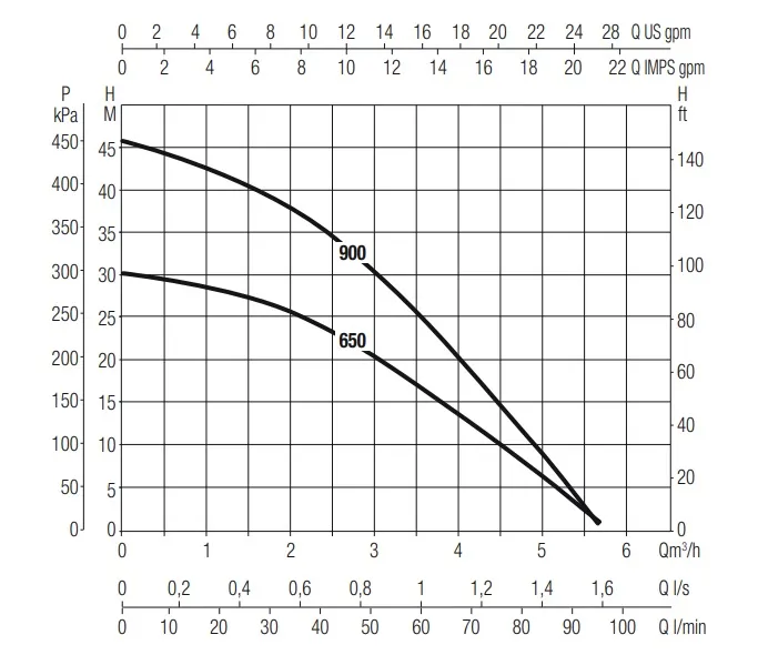 - Art der gepumpten Flüssigkeit: sauber, frei von Feststoffen oder Schleifmitteln, nicht viskos, nicht aggressiv, nicht kristallisiert und chemisch neutral
