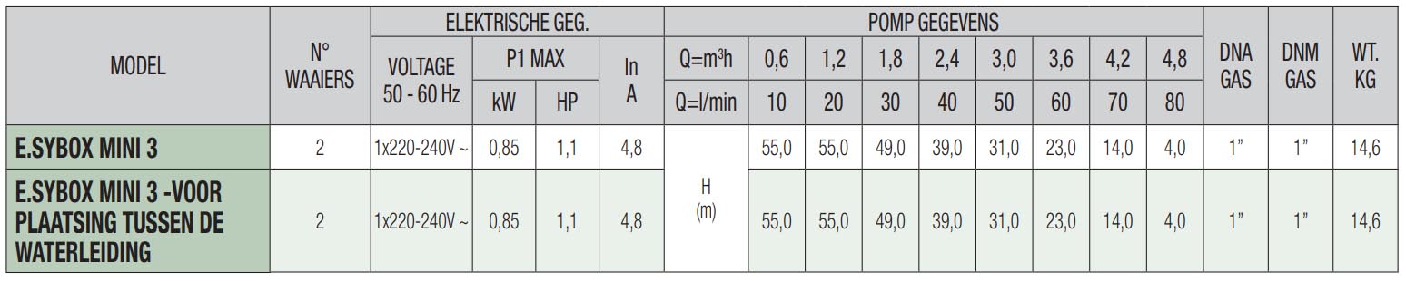 Die E.sybox ist ein voll integriertes System, bei dem die hydraulischen Komponenten von einem voll programmierbaren Frequenzregler gesteuert werden. Diese Frequenzsteuerung sorgt dafür, dass die Pumpe ihre Drehzahl an den erforderlichen Wasserbedarf und den entsprechenden Druck anpasst. Dies führt zu einem sehr konstanten Wasserdruck und zu Einsparungen bei Ihren Energiekosten. Im Vergleich zu einer herkömmlichen Hydronikpumpe ist die E.sybox mini 50 % energieeffizienter. Außerdem verlängert die Frequenzregelung die Lebensdauer der DAB e.sybox mini Hydropumpe, so dass Sie so lange wie möglich Freude an der Pumpe haben.