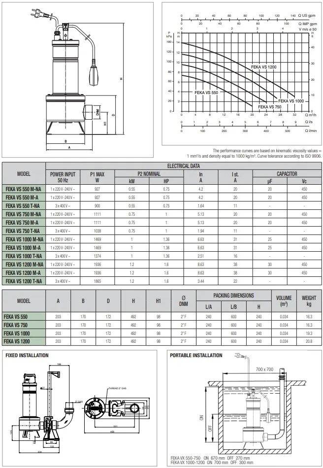 Die DAB Feka VS 1200 M-A ist für den Dauerbetrieb geeignet und verfügt über einen eingebauten thermischen Schutz. Die Pumpe hat eine maximale Pumpkapazität von 30.000 Litern pro Stunde und eine maximale Förderhöhe von 14 Metern (1,4 bar). Die DAB Feka VS 1200 M-A ist eine 230V Pumpe mit einer Leistung von 1,2 kW und wird standardmäßig mit einem 10 Meter langen Stromkabel geliefert.