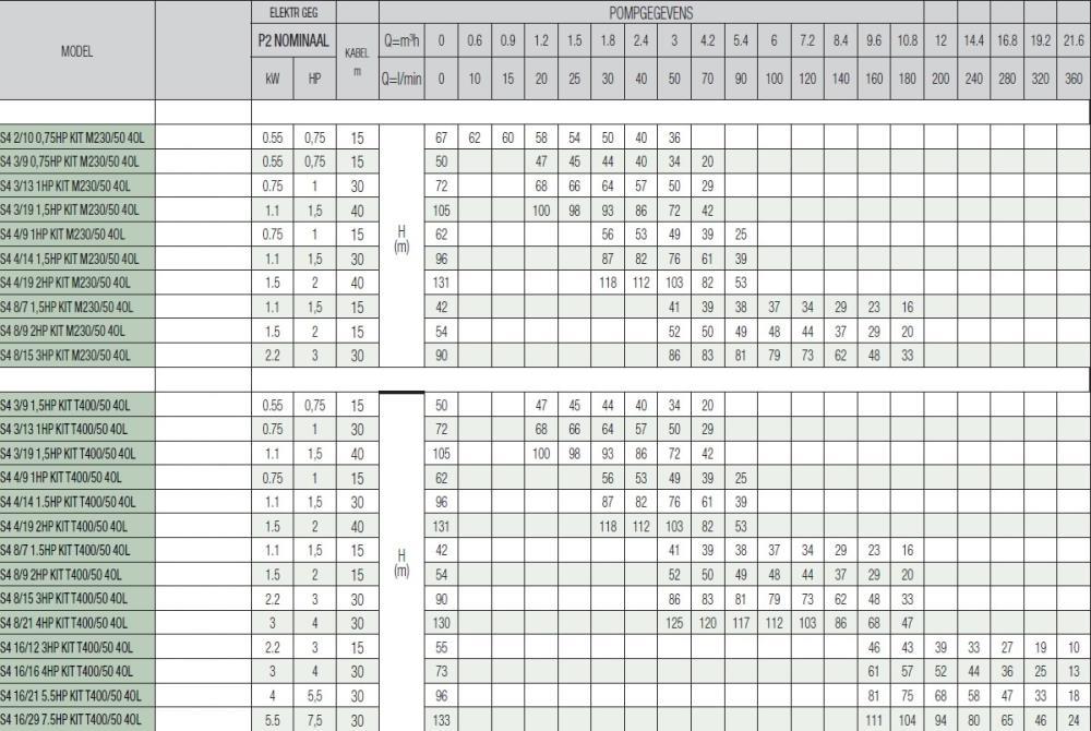 Pumpenkennlinie DAB S4 3/19 1,5HP KIT T400/50 4OL