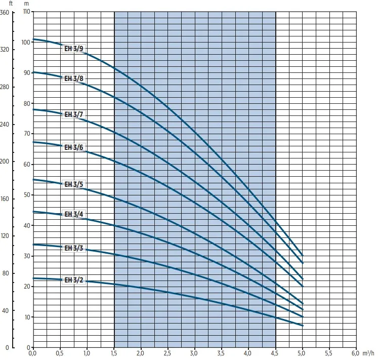 Die Franklin EH 3/4 ist nicht selbstansaugend und soll mit einem Rückschlagventil montiert werden. Die Pumpe hat eine maximale Pumpkapazität von 4.500 Litern pro Stunde und eine maximale Förderhöhe von 40 Metern (4,0 bar). Die Franklin EH 3/4 ist eine 230V Pumpe mit einer Leistung von 0,55 kW und wird standardmäßig ohne Anschlusskabel/Stromkabel geliefert.
