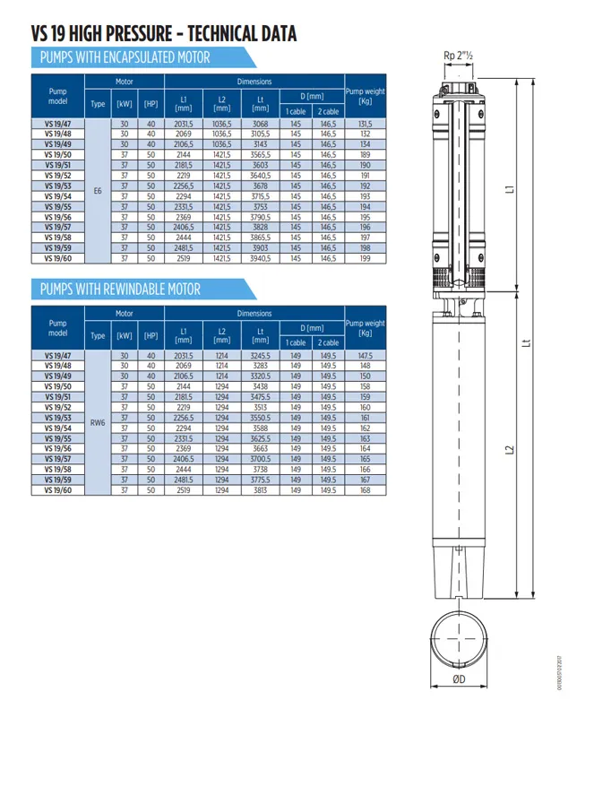Das Franklin VS 19/52 ist ein robustes und effizientes Hydraulikpumpenteil mit einer Leistung von 40 PS (30 kW), geeignet für 6-Zoll-Brunnen. Dieser Pumpenteil wird mit einem Motorteil kombiniert und eignet sich ideal für Anwendungen in der Landwirtschaft, Industrie, Haushalten und Druckerhöhungssystemen.