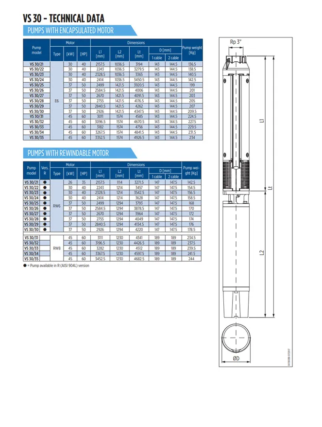 Die Franklin VS 30/29 ist eine robuste und effiziente Hydraulikpumpe mit einer Leistung von 50 PS (37 kW), geeignet für 6-Zoll-Brunnen. Dieser Pumpenteil wird mit einem Motorteil kombiniert und eignet sich ideal für Anwendungen in der Landwirtschaft, Industrie, Haushalten und Druckerhöhungssystemen.