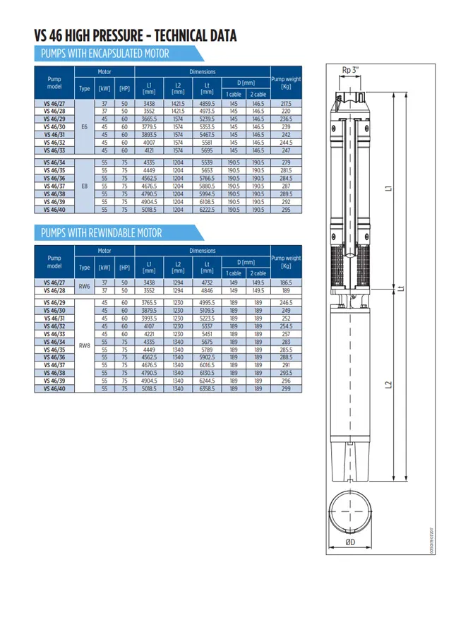 Die Franklin VS 46/29 ist eine robuste und effiziente Hydraulikpumpe mit einer Leistung von 60 PS (45 kW), geeignet für 6-Zoll-Brunnen. Dieser Pumpenteil wird mit einem Motorteil kombiniert und eignet sich ideal für Anwendungen in der Landwirtschaft, Industrie, Haushalten und Druckerhöhungssystemen.