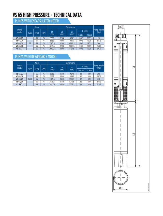 Das Franklin VS 65/27 ist ein robustes und effizientes Hydraulikpumpenteil mit einer Leistung von 75 PS (55 kW), geeignet für 6-Zoll-Brunnen. Dieser Pumpenteil wird mit einem Motorteil kombiniert und eignet sich ideal für Anwendungen in der Landwirtschaft, Industrie, Haushalten und Druckerhöhungssystemen.