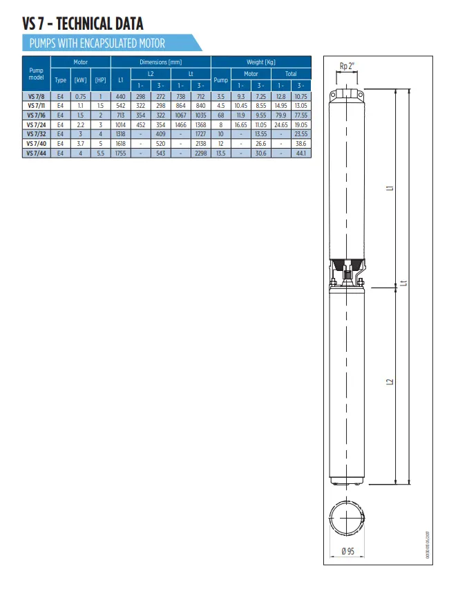 Das Franklin VS 7/40 ist ein robustes und effizientes Hydraulikpumpenteil mit einer Leistung von 5 PS (3,7 kW), geeignet für 4-Zoll-Brunnen. Dieser Pumpenteil wird mit einem Motorteil kombiniert und eignet sich ideal für Anwendungen in der Landwirtschaft, Industrie, Haushalten und Druckerhöhungssystemen.