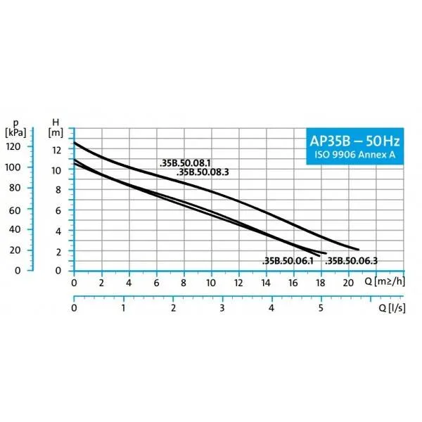 Die Grundfos AP35B 50.06.A1 ist mit einem Kühlmantel ausgestattet und verfügt über einen eingebauten thermischen Schutz. Die Pumpe hat eine maximale Pumpkapazität von 18.000 Litern pro Stunde und eine maximale Förderhöhe von 10 Metern (1,0 bar). Die Grundfos AP35B 50.06.A1 ist eine 230V Pumpe mit einer Leistung von 1 kW und wird standardmäßig mit einem 10 Meter langen Stromkabel geliefert.