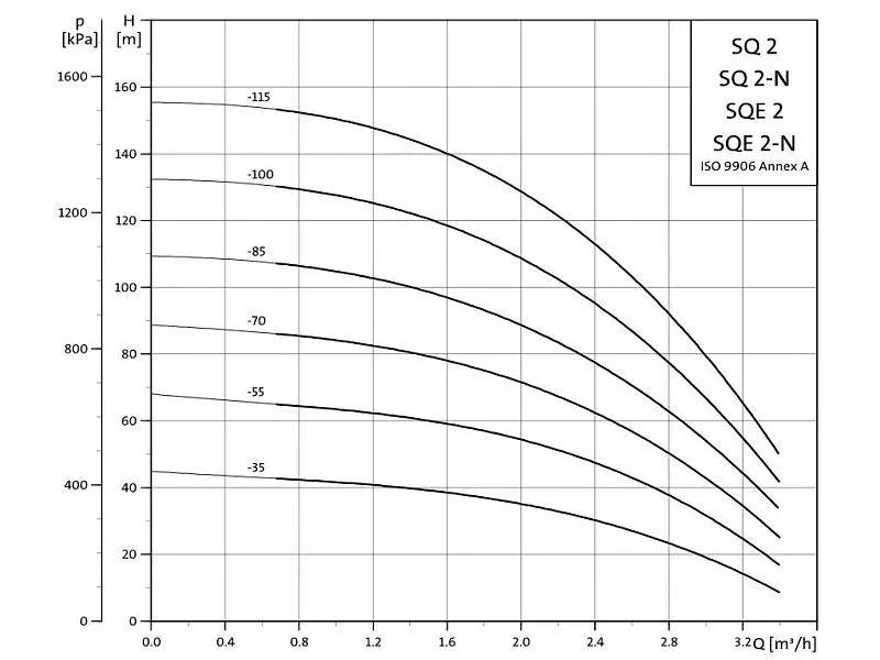 - Maximale Förderhöhe der SQ 2-Serie zur Versorgung aus extremen Tiefen bei stabilen Kennlinienwerten.