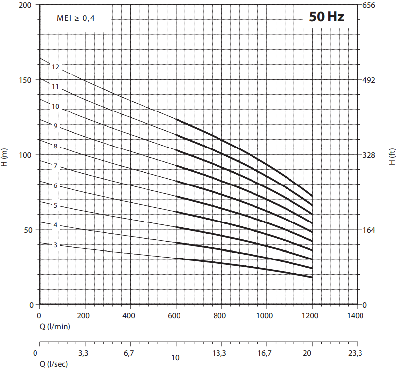 - Herausragende Förderkraft durch 5 präzisionsgefertigte Edelstahl-Hydraulikstufen AISI 304 für hohe Volumenströme.
