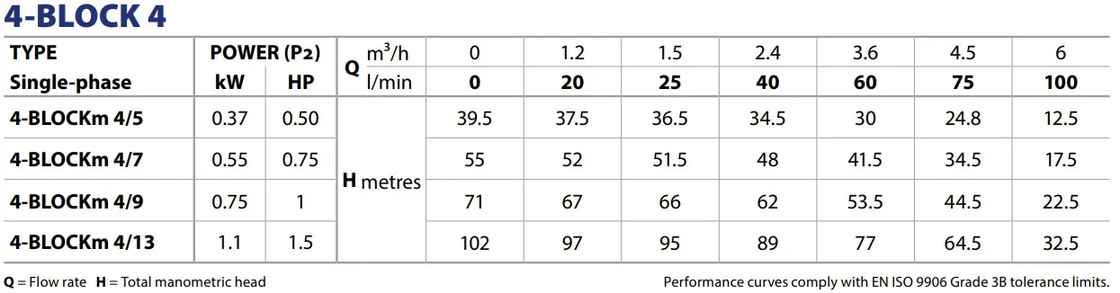 Pedrollo 4BLOCK m 4/14 - 4" Brunnenpumpe Spezifikationen