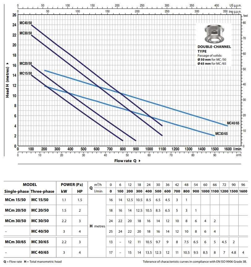 Die Pedrollo MCm 20/50 ist mit einem Schwimmerschalter ausgestattet, der das automatische Ein- und Ausschalten je nach Wasserstand ermöglicht. Wenn die automatische Ein- und Ausschaltung nicht erforderlich ist, sollten Sie die Pedrollo MC 20/50 in Betracht ziehen. Dies ist übrigens eine 400V Pumpe.