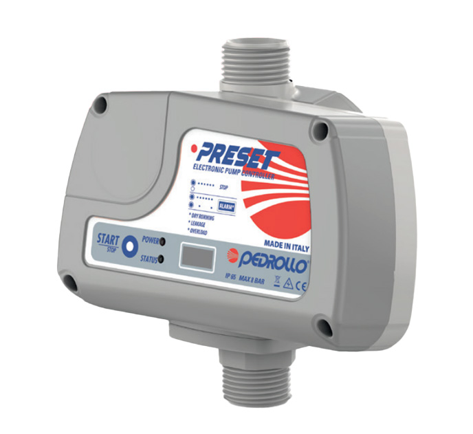 Der Presflo Preset PS16 - 2 HP / 1,5 kW ist ein elektronischer Durchfluss-/Druckregler, der eine konstante (automatische) druckgesteuerte Pumpe bietet und für Pumpen bis zu 2 HP geeignet ist. Die PresFlo Preset schaltet die Pumpe automatisch ein und aus, wenn sich der Druck ändert. Einschaltdruck von 0,8 - 9,0 bar (in 0,2 bar-Schritten) und Ausschaltdruck von 1,0 - 9,2 bar (in 0,2 bar-Schritten)