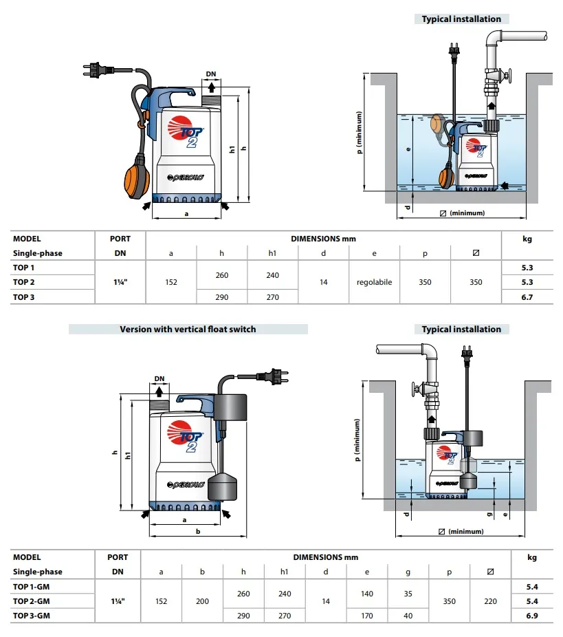 Die Pedrollo Top 2 ist mit einem Schwimmerschalter ausgestattet, der das automatische Ein- und Ausschalten je nach Wasserstand ermöglicht. Wenn die automatische Ein- und Ausschaltung nicht erforderlich ist, sollten Sie die Pedrollo Top 2 ohne Schwimmer in Betracht ziehen.