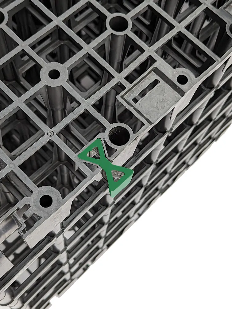 Der Sickerspeicher-Kreuzverbinder kann verwendet werden, wenn Sie sich für einen modularen Aufbau der Infiltrationskästen entscheiden. Der Kreuzverbinder eignet sich zum Verbinden von positionierten Kästen.